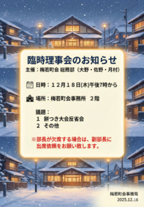 お知らせ 事務局 臨時理事会のお知らせ wpmaster 2025年12月16日 Gemini_Generated_Image_bwdz5ibwdz5ibwdz.png About The Author wpmaster See author's posts FacebookXHatenaCopy Post navigation Previous: 令和7年度歳末警戒実施のお知らせ コメントを残す コメントをキャンセルコメントを投稿するにはログインしてください。