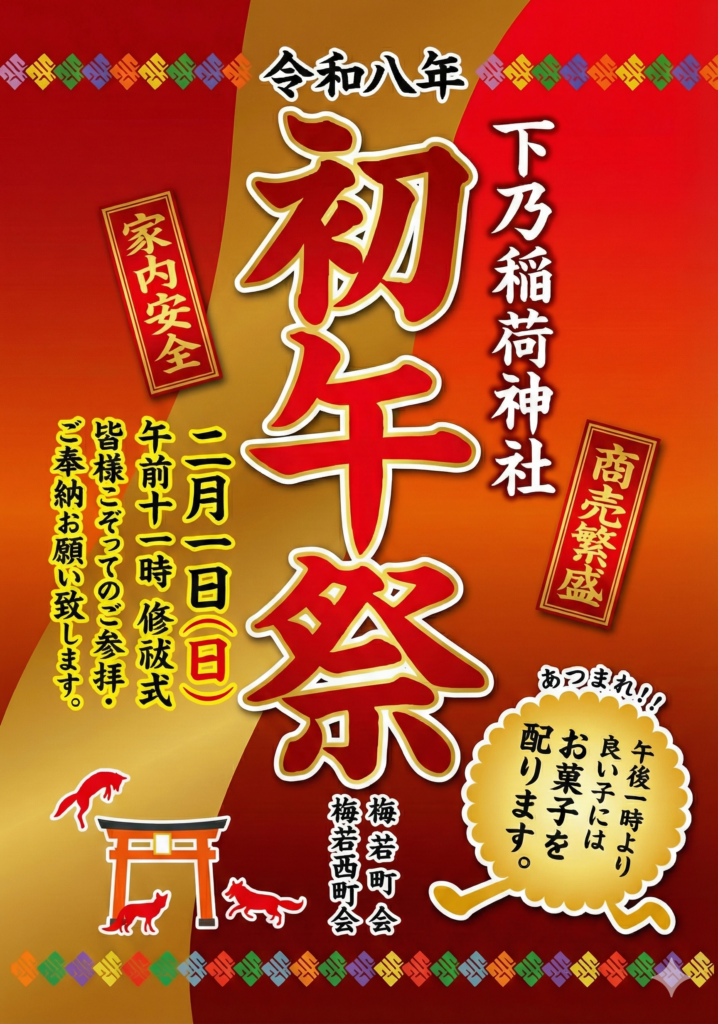 事務局 令和8年 初午祭のお知らせ wpmaster 2026年1月20日 1 分読み取り 令和8年初午祭のお知らせ About The Author wpmaster See author's posts FacebookXHatenaCopy 投稿ナビゲーション 前: 令和8年梅若町会新年会-2026/01/10次へ: 確定申告会場が変わります! コメントを残す コメントをキャンセルコメントを投稿するにはログインしてください。