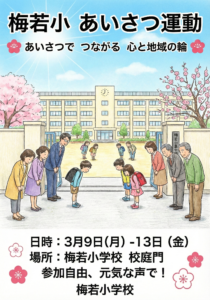 お知らせ 婦人部の活動 梅若小 あいさつ運動-2026/03/09-13 wpmaster 2026年3月19日 0 お疲れ様でした。🙇 寒い中での挨拶運動へのご協力、ありがとうございました。 坂本さんより About The Author wpmaster See author's posts FacebookXHatenaCopy 投稿ナビゲーション 前: 令和8年4月 春の全国交通安全運動次へ: 令和8年4月度定例理事会のお知らせ コメントを残す コメントをキャンセルコメントを投稿するにはログインしてください。